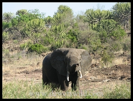 The Northern Kruger National Park is elephant country, and we encountered numerous bulls, including some large tuskers.