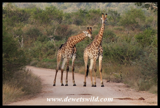 Young giraffe males on the Crocodile River road ← Previous Next → Young giraffe males on the Crocodile River road (Kruger)