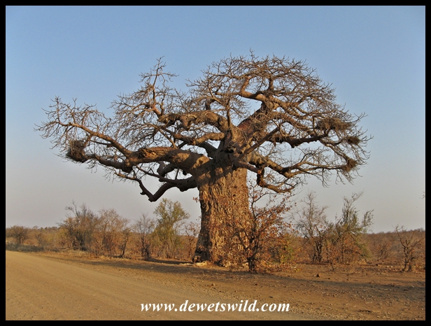 Baobab, Kruger (2) ← Previous Next → Von Wielligh’s baobab, between Olifants and Letaba in the Kruger Park, in the dry season