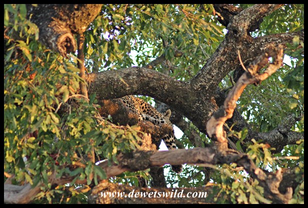 Skukuza-Phabeni (6) ← Previous Next → Leopard in a tree on the S3 near Skukuza, Kruger Park Leopard on the S3