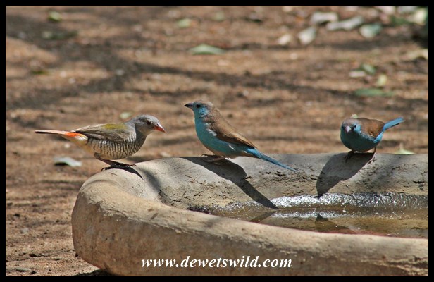 KNP_26Sep2014 (11) ← Previous Next → Feathered friends visiting our cottage at Shingwedzi: blue waxbills and a green-winged Pytilia