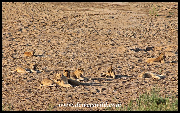 Lions on the sand in the bed of the Black Umfolozi