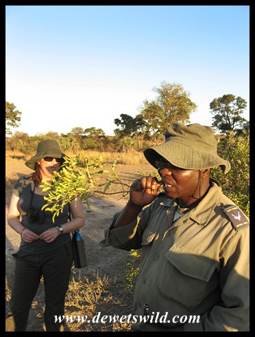 Sweni Trail July 2015 (81) ← Previous Next → Ndou demonstrating how to brush your teeth with a Magic Guarri stem