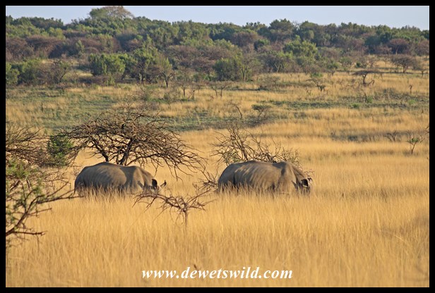 White rhinos in long grass