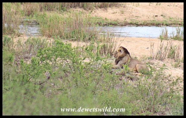 Lion lying on the river bank