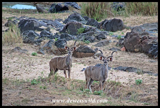 Two kudu bulls in the bed of the Letaba