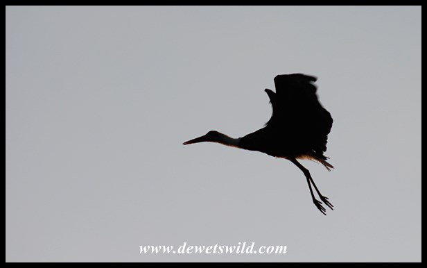 Woolly-necked stork taking flight