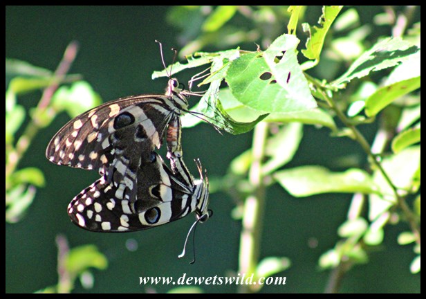 Umlalazi Forests (3) ← Previous Next → There seems to be butterflies everywhere you look in the forest – these are mating Citrus Swallowtails