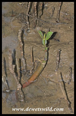Black mangrove seedling embedded in the mud