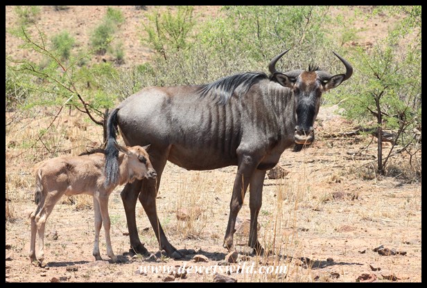 Blue wildebeest calf staying close to mom