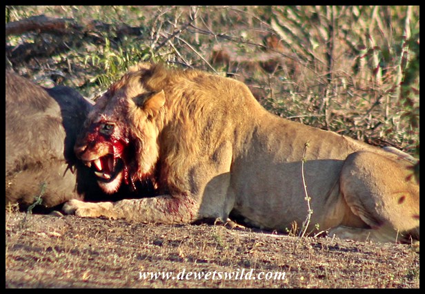 Lion pride with buffalo kill