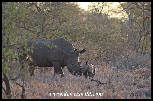 A tender moment between a White Rhino cow and her calf