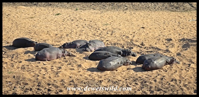 Hippos lazing on a sandbank in the Nwaswitsontso River