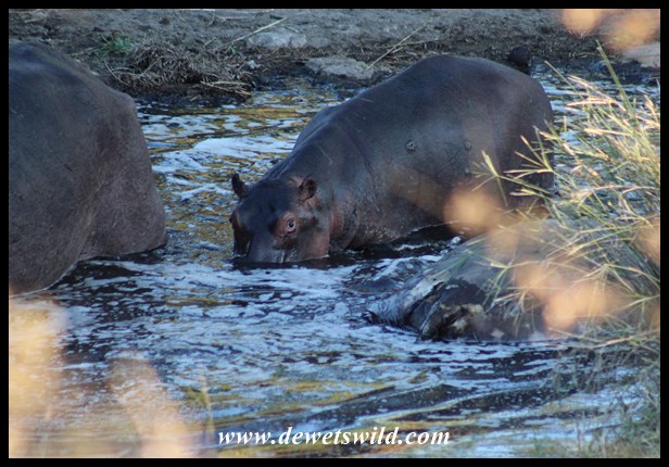 Drought Hippos (5) ← Previous Next → Crocodile feeding on hippo carcass in the Nwanetsi River near Satara