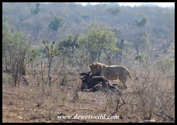 Kruger Winter Predators Lions (5) ← Previous Next → Another lion protecting his buffalo carcass from vultures near Tshokwane