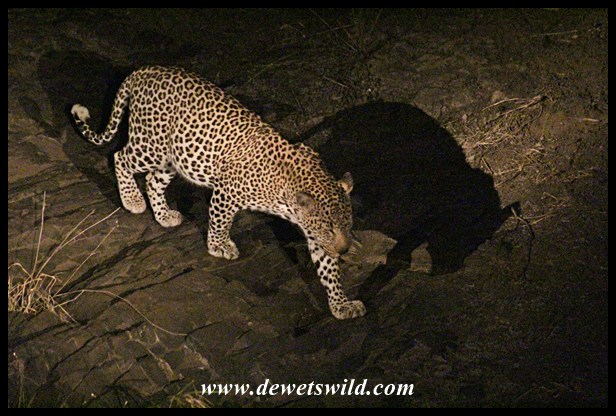 Kruger Winter Predators Satara Night Drive Leopard (1) ← Previous Next → Leopard at Nwanetsi Bridge, on a night drive from Satara