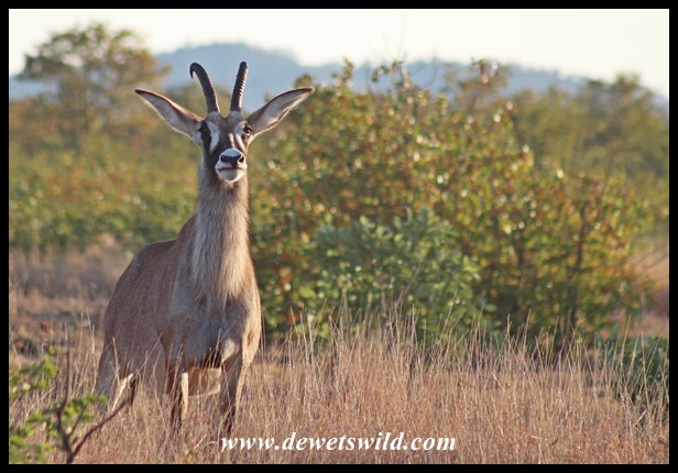 Kruger Winter 2016 Rare Antelope Roan (4) ← Previous Next → Roan Antelope Cow along the Nshawu marsh in Kruger Park