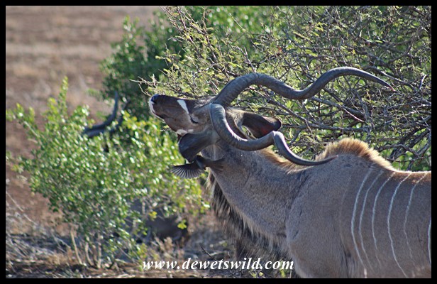 Kudu bull with an oxpecker irritation