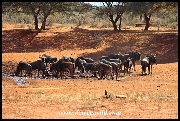 Big herd of blue wildebeest at the water