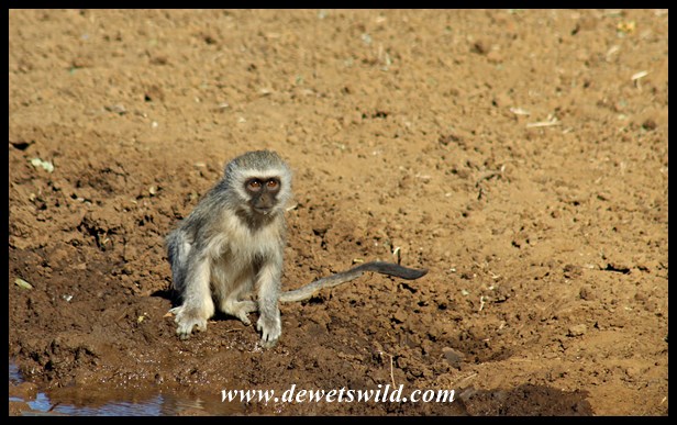 Vervet monkey drinking at Stofdam