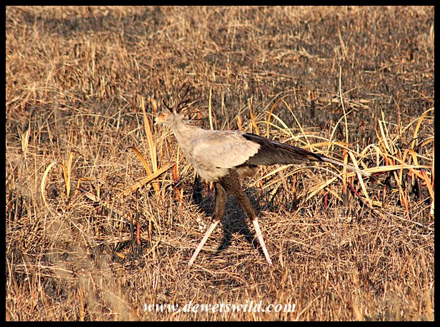 Secretarybird searching for victims of a recent fire