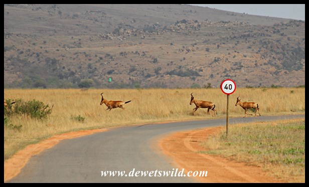 kgaswane-october-2016-26 ← Previous Next → Red Hartebeest on the run, totally ignoring the speed limit!