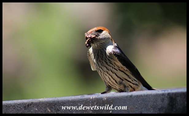 thendele-swallows-5 ← Previous Next → Greater Striped Swallow bringing mud to build its nest on the veranda of Thendele’s unit 27