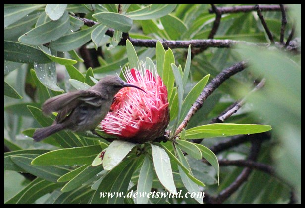 royal-natal-birdlife-9 ← Previous Next → Female Greater Double-collared Sunbird visiting a Common Sugarbush