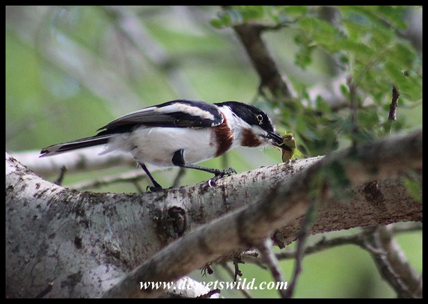 Chinspot Batis (female) with grasshopper prey