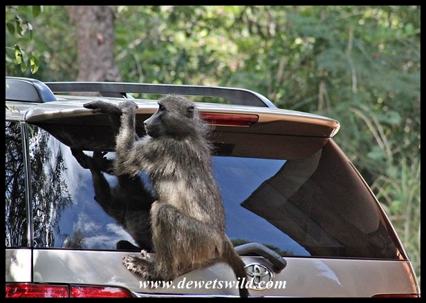 Chacma Baboon (13) ← Previous Next → Baboons have learnt that unlocked cars could be an easy source of food