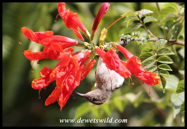 White-belliedSunbird_Garsfontein_09Aug2019 ← Previous Next → White-bellied Sunbird Female feeding on Cape Honeysuckle nectar in our garden
