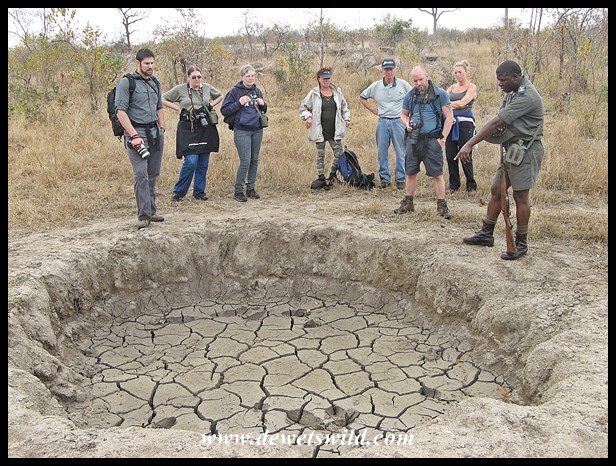 Napi Wilderness Trail Hike 1 (21) ← Previous Next → Dried up mud wallow, with Ronnie explaining how every animal that visits helps to enlarge it