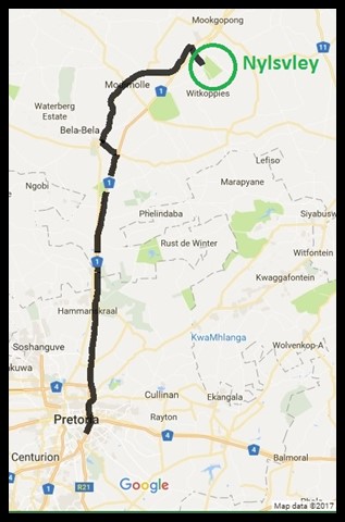 Pretoria to Nylsvley along the N1 and R101