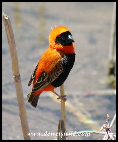 Karoo NP December 2017 Red Bishop(21) ← Previous Next → Red Bishop at the Birdhide in the camp at Karoo National Park