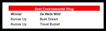 Best Environmental Blog Next → de Wets Wild was voted Best Environmental Blog in the 2017 South African Blog Awards