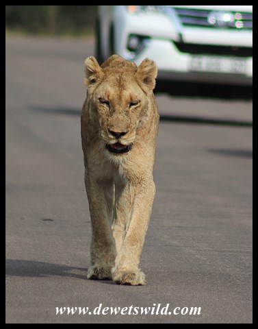 Lioness pacing the H4-1 between Skukuza and Lower Sabie