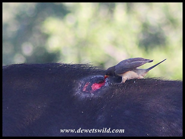 Yellow-billed Oxpecker on a festering wound