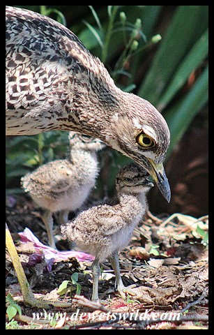 Spotted Thick-knee with 3-day old chicks