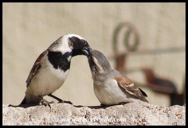 Cape Sparrow PTA 20171118 (6) ← Previous Next → Cape Sparrow male feeding almost fully grown youngster