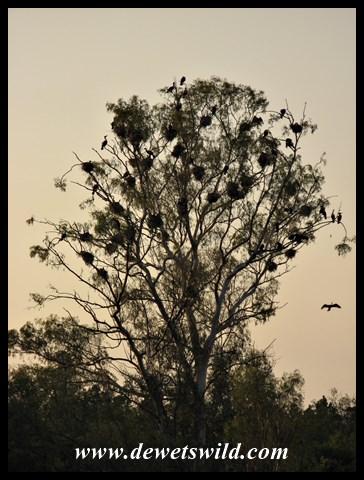 White-breasted Cormorant colony in a large tree