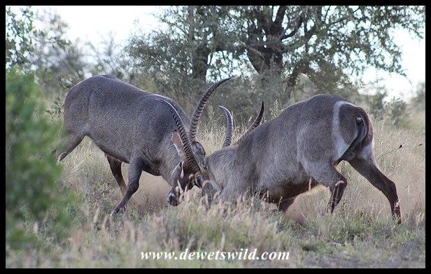 Nshawu_Waterbuck-fight_May2018 (2) ← Previous Next → Dueling Waterbuck Bulls in the Nshawu Vlei (marsh) near Mopani in the Kruger National Park