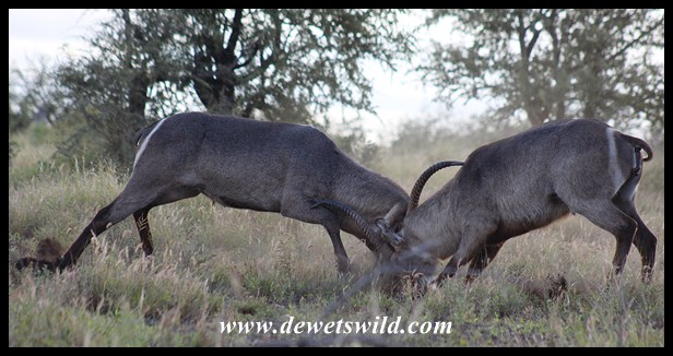 Nshawu_Waterbuck-fight_May2018 (6) ← Previous Next → Dueling Waterbuck Bulls in the Nshawu Vlei (marsh) near Mopani in the Kruger National Park