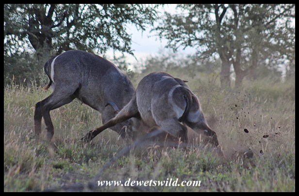 Nshawu_Waterbuck-fight_May2018 (7) ← Previous Next → Dueling Waterbuck Bulls in the Nshawu Vlei (marsh) near Mopani in the Kruger National Park