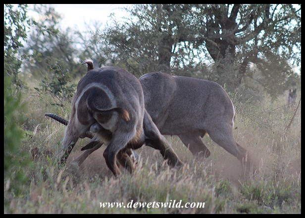 Nshawu_Waterbuck-fight_May2018 (9) ← Previous Next → Dueling Waterbuck Bulls in the Nshawu Vlei (marsh) near Mopani in the Kruger National Park