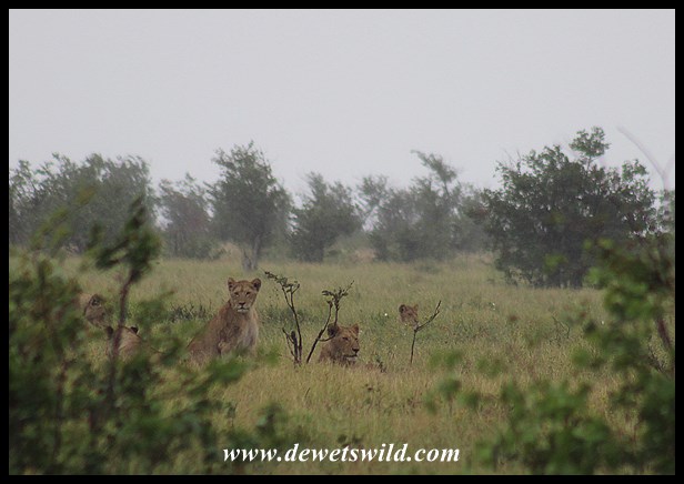 Lion pride in the rain at Tinhongonyeni
