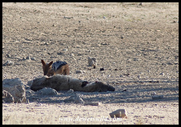 Kgalagadi_Jun2018_BlackbackedJackal (135) ← Previous Next → Black-backed Jackal eating from the carcass of a Spotted Hyena