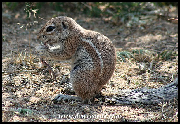 Mata Mata Ground Squirrels Joubert de Wet June 2018 (4) ← Previous Next → Ground Squirrel gnawing on the leg of a dove in Mata Mata