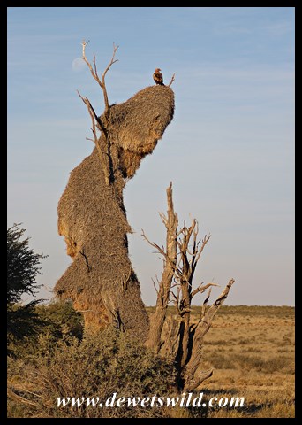 Tawny Eagle on a Sociable Weaver nest
