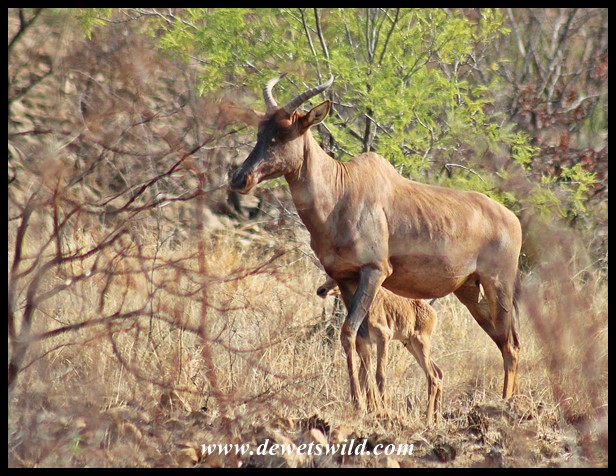 Protective Tsessebe cow with her calf