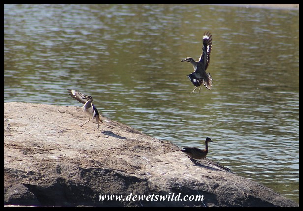 WaterThick-knee_Kruger_31May2019 (24) ← Previous Next → Fulvous Whistling Duck “ducks” as two Water Thick-knees come in to land at Transport Dam